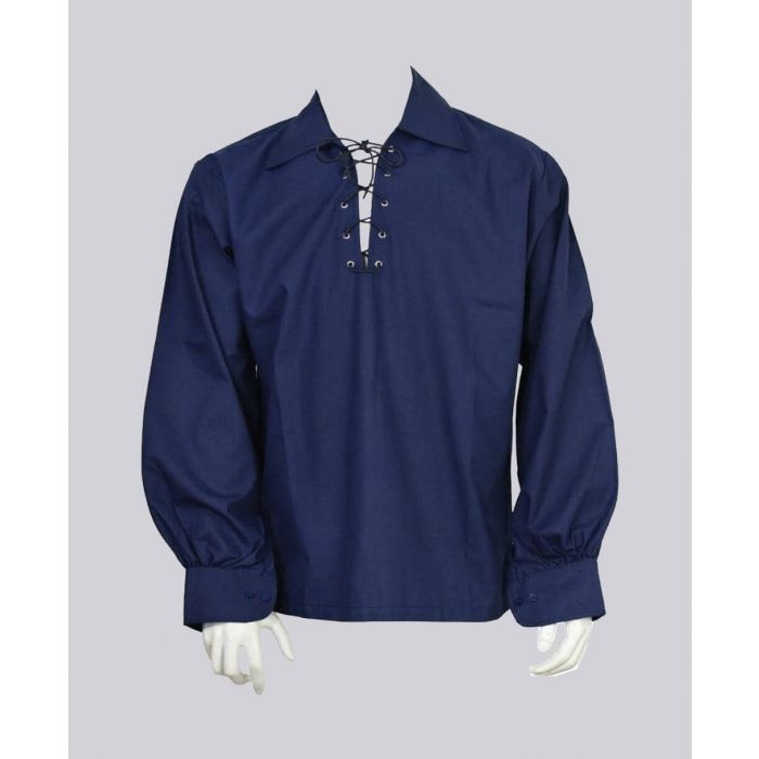 Navy Blue Scottish Mens Jacobean Ghillie Kilt Shirt